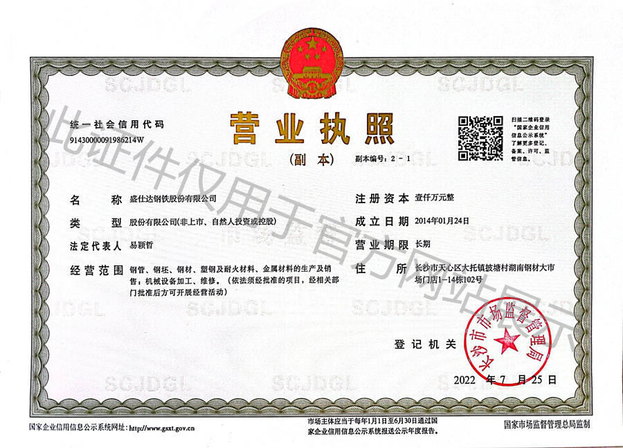 與盛仕達(dá)鋼鐵股份有限公司同一法人的兄弟公司——湖南隆盛達(dá)鋼管制造有限公司是一家以螺旋鋼管產(chǎn)品生產(chǎn)、銷(xiāo)售一體的鋼材采購(gòu)整體服務(wù)商,成立于2008年,位于湖南長(zhǎng)沙高星物流園,公司現(xiàn)有兩個(gè)大型的螺旋鋼管生產(chǎn)基地,多條雙面埋弧焊螺旋鋼管生產(chǎn)線(xiàn)、涂塑螺旋管線(xiàn)、3PE螺旋管線(xiàn),可生產(chǎn)直徑為219-2820mm,壁厚為6-24mm的雙面埋弧焊螺旋鋼管;也可進(jìn)行螺旋管防腐、鋼板及卷筒加工等,全部采用成熟且穩(wěn)定的成型技術(shù)。公司先后獲取了高新技術(shù)企業(yè)、售后五星服務(wù)認(rèn)證證書(shū)、涉水衛(wèi)生許可批件、信用等級(jí)證等資質(zhì)和證書(shū);同時(shí)也通過(guò)ISO9001:2000質(zhì)量管理體系認(rèn)證、特種設(shè)備制造許可證、ISO14001:1996環(huán)境管理體系認(rèn)證、ISO15001:2018能源管理體系認(rèn)證等標(biāo)準(zhǔn)認(rèn)證……